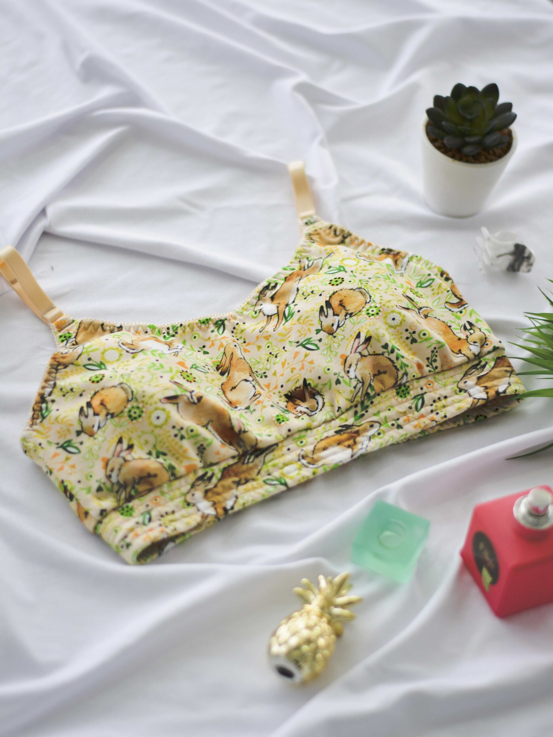 Хлопковый бюстгальтер без косточек, на застежке, с мягкой чашечкой обеспечивает комфортное прилегание. Отшивается с подкладом из хлопка. Состав ткани — 95% хлопок, 5% — лайкра.