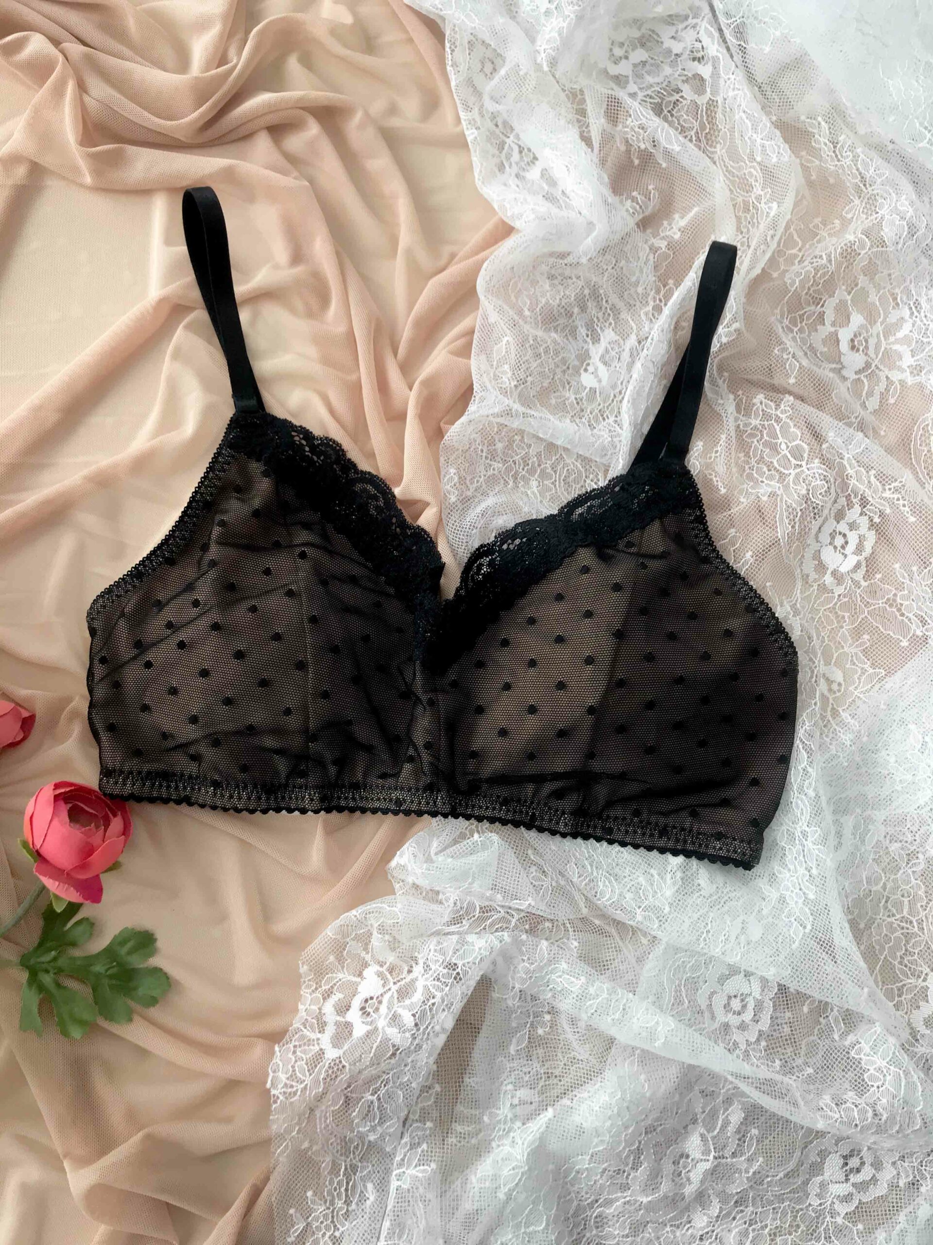 Бюстгальтер с вытачками, обеспечивающими комфортное прилегание, без косточек, поролоновых вставок, без застежки. Лиф выполнен с резинкой под грудью и широкими бретелями, идеально подойдет для большой груди. Белье отшивается с подкладом из хлопка.